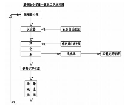 隧道窑的烟气进入脱硫塔,与塔中喷淋而下的脱硫液接触。烟气中的二氧化硫被脱硫液中的有效成分氢氧化钠吸收,生成的亚硫酸钠在特定的反应器中与氢氧化钙反应生产氢氧化钠和亚硫酸钙。整个脱硫过程氢氧化钠和氢氧化钙配合使用,其中氢氧化钠只需投放一次,脱硫系统可通过氢氧化钙置换出来。二氧化硫先生成亚硫酸钠再生成亚硫钙最后被氧化成硫酸钙经脱水排出。脱硫技术工艺流程见下图: